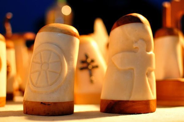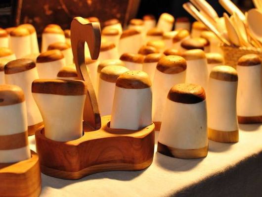 A fűszertartó szarvasmarha lábszár csontból készült. A teteje és az alsó része cseresznye fából van.
