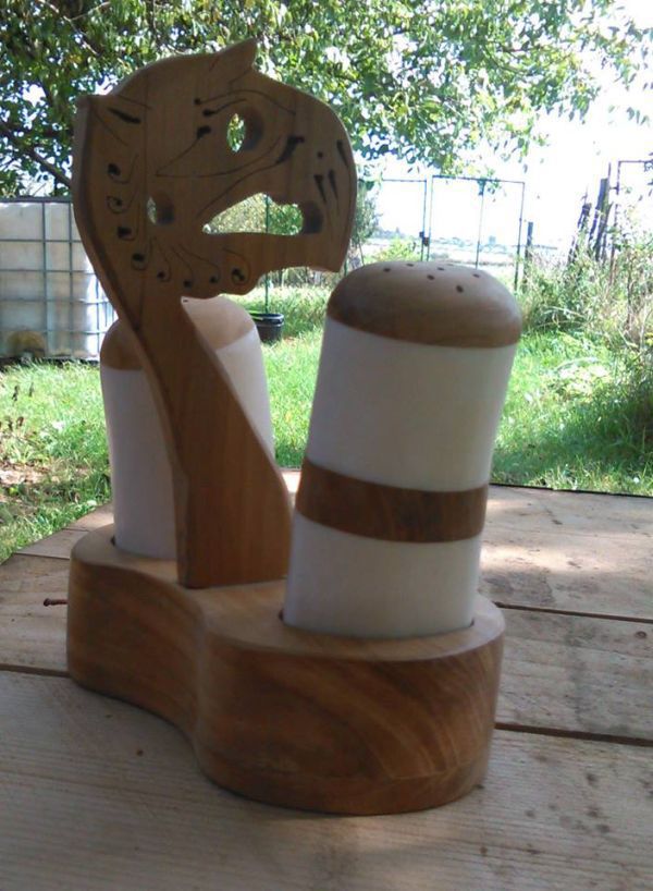 Az aztali szett három részból áll. Egy só szóróból, egy bors szóróból és a tartóból. Minden egyes asztali szett tartó külön a hozzájuk tartozó só-; és bors szóróhoz készült. A fűszertartók szarvasmarha lábszár csontból készültek. A tetejük és az alsó részük különböző típusú fából. A fa és a csont tökéletesen van összecsiszolva. A felülete teljesen síma, bársonyos tapintású.
